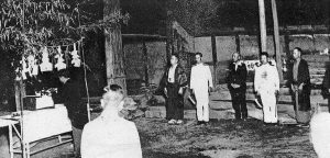 それより前、旧暦11月8日の鞴(ふいご)祭りに合わせて再興の祈願祭をおこなったと考えるのであれば、やはりこの写真も12月10日ころに撮影されたものと推測できます。ちなみに、出雲製鋼株式会社の操業のために現吉田町域で砂鉄採取がスタートするのが昭和14年。現在科学館で砂鉄採取に関する史料も展示しておりますので、ご興味のある方は是非ご覧ください。