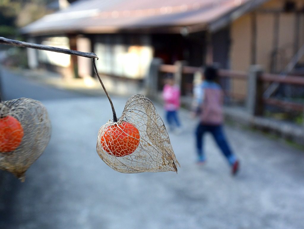 「たたらの里山内に秋の日差しが降り注いで、小道沿いに色どられたほおずきの前で遊ぶ子供たちの歓声が聞こえてくるような作品に仕上がっている。山内ならではの光景がひしひしと伝わってきて、忘れてしまった昔の日常の光景を思い出し哀愁を感じさせる作品。」