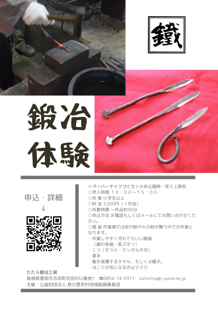 第3回 たたら塾🏴参加者募集中🏴参加申込不要対象:たたらや吉田の文化に関心のある方ならば、どなたでもOK!* […]
